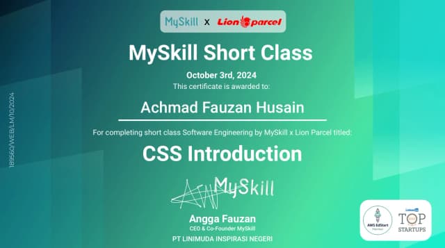 Certificate from the training I attended